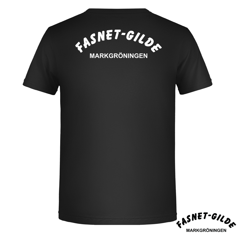 Veredelung: Einzelname auf der Vorderseite Brust, Fasnet-Gilde Markgröningen Schriftzug auf der Rückseite