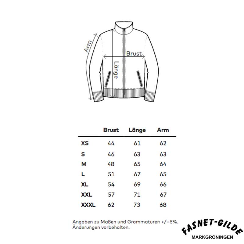 Veredelung: Einzelname auf der Vorderseite Brust, Fasnet-Gilde Markgröningen Schriftzug auf der Rückseite, Optional mit Abteilung.