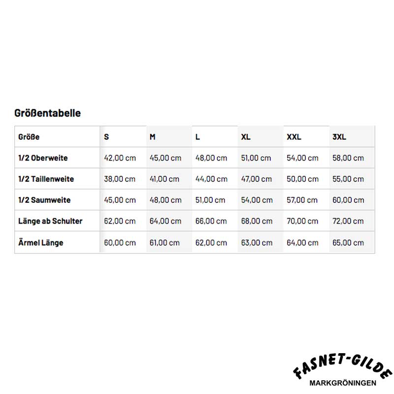 Veredelung: Einzelname auf der Vorderseite Brust, Fasnet-Gilde Markgröningen Schriftzug auf der Rückseite, Optional mit Abteilung.