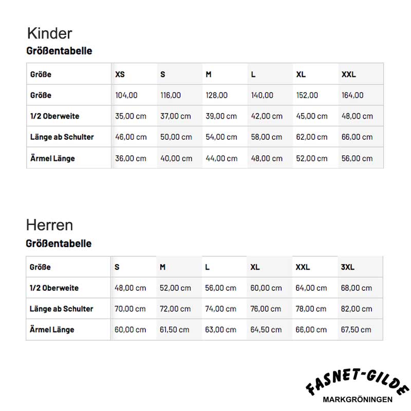 Veredelung: Einzelname auf der Vorderseite Brust, Fasnet-Gilde Markgröningen Schriftzug auf der Rückseite, Optional mit Abteilung.