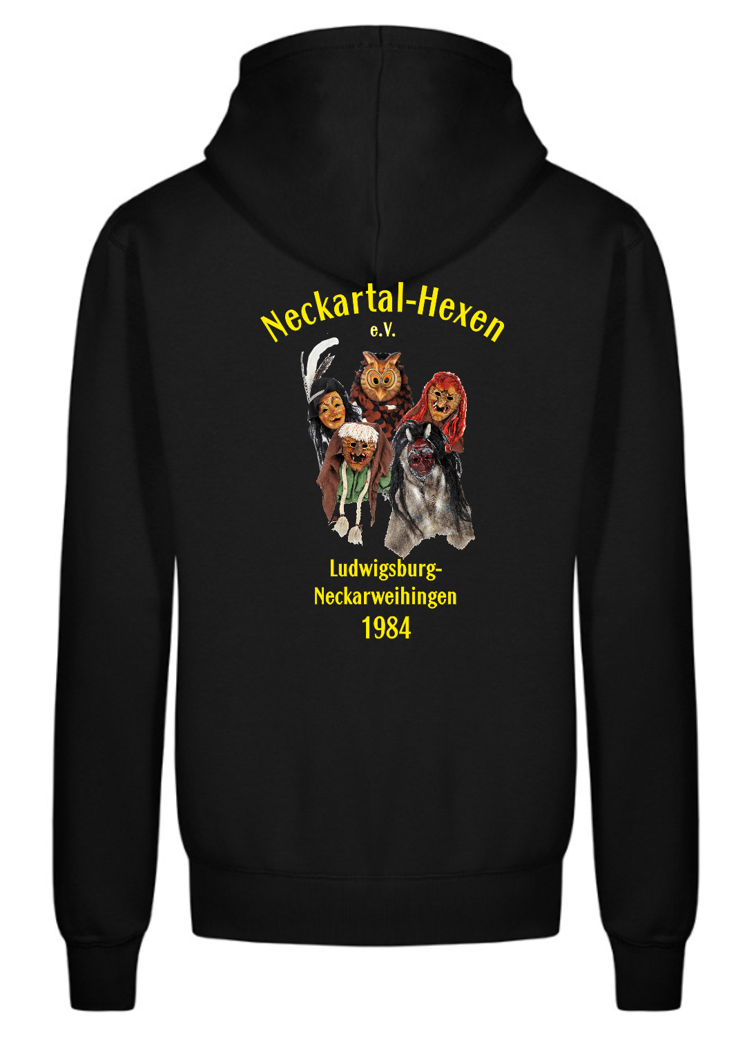 Veredelung: Einzelname auf der Vorderseite Brust mit Abteilung, Neckartal-Hexen Logo auf der Rückseite