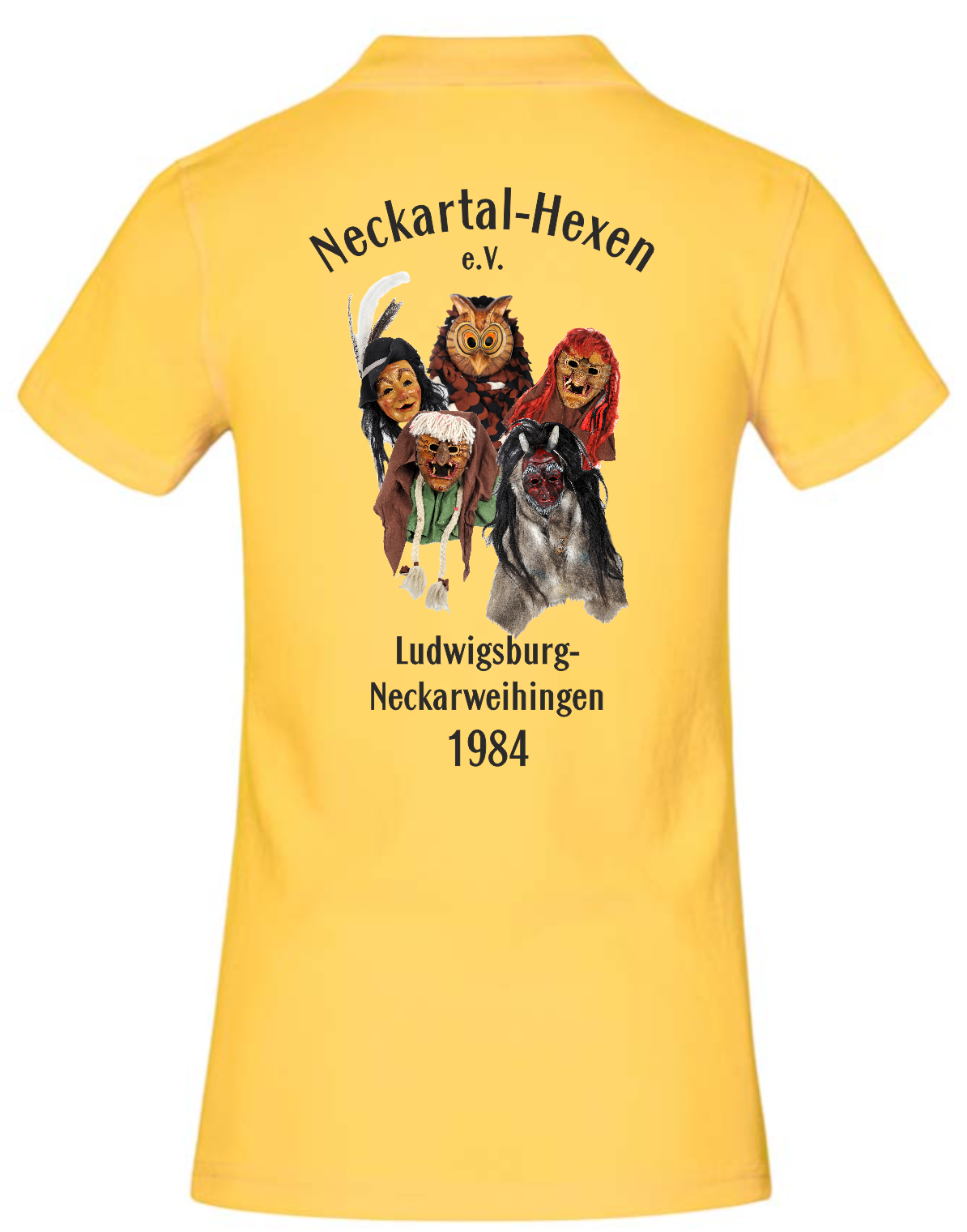 Veredelung: Einzelname auf der Vorderseite Brust mit Abteilung, Neckartal-Hexen Logo auf der Rückseite